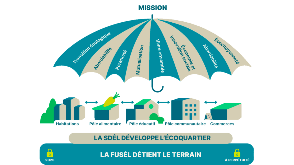 La FUSÉL aspire à bâtir un écoquartier vivant, inclusif et résilient, où l’accès à un logement de qualité et à un environnement sain est garanti à long terme pour les personnes qui y habitent. Elle se conçoit comme gardienne d’un patrimoine collectif qui appartient à la communauté. En mobilisant des partenariats municipaux, communautaires et privés autour d’une gouvernance transparente et participative, la FUSÉL incarne une vision de la transition socioécologique ancrée dans l’équité et la solidarité.
