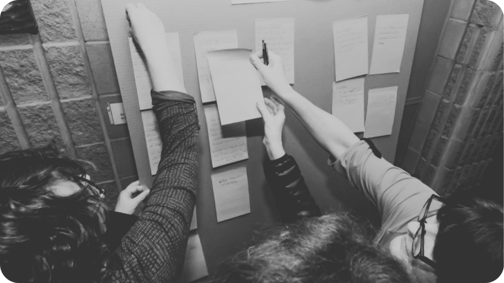 Organisation d’une charrette citoyenne. La revendication de logements sociaux et communautaires devient une proposition d’aménagement d’un quartier complet avec logements, école, centre communautaires, commerces, etc, pour être soumise à la communauté ahuntsicoise.